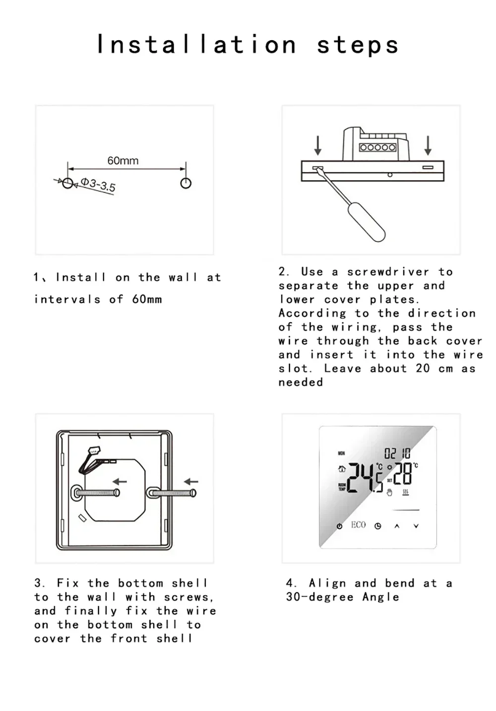 1. 16A is suitable for electric heating film/heating floor/electrical warm painting/heating cable/heating tiles.